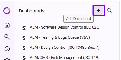 To add a Dashboard – Click on the “+” button on the left pane