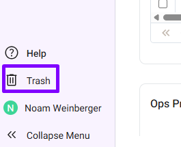 Clicking the “Trash” icon (located at the bottom left of the navigation panel) will display a list of deleted items from the recycle bin.