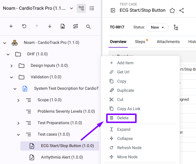 This option enables you to delete the item from the Tree View.