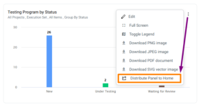 The “Distribute Panel to Home” option allows admins to add panels directly to the Home page of specific users or groups. This feature makes important panels easily accessible and ensures consistent Home dashboards across teams.