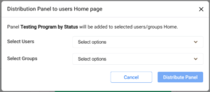 Select the users and groups you’d like to see this panel on their Home page, then click ‘Distribute Panel’.
