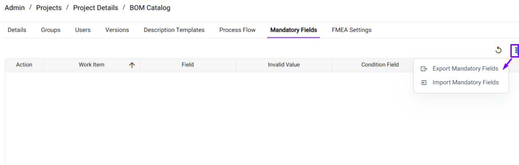 User can easily add the mandatory field rules once the Admin Mandatory Field Rule is defined, it can be Imported/exported to the Existing Projects.