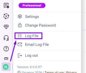 The logfile in Orcanos enables you to view the list of the error log in the application.