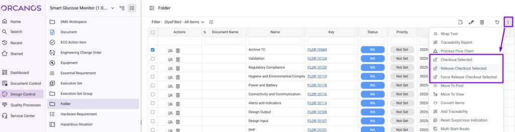 - Select the Checkout Selected option from More Actions Icon