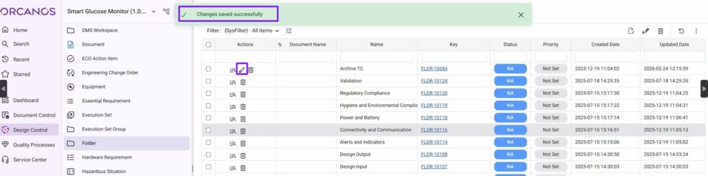 - The system shows the success message. Edit icon is now available in the Actions column.
