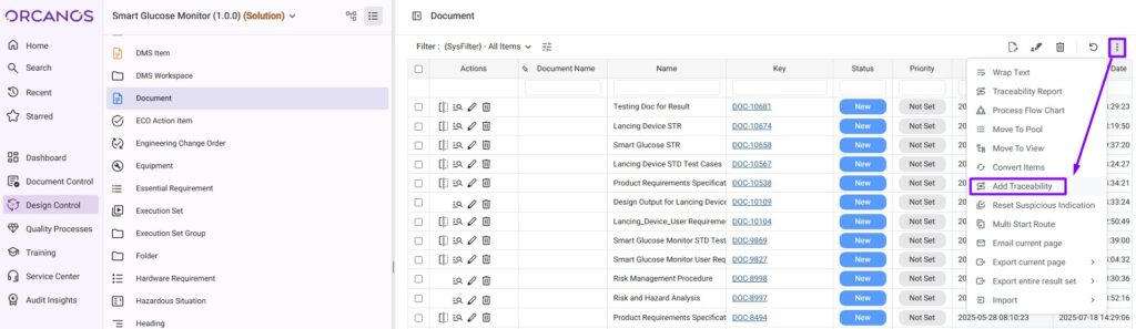 Add Traceability Options allows the user to set up traceability for Single/Multiple Items.