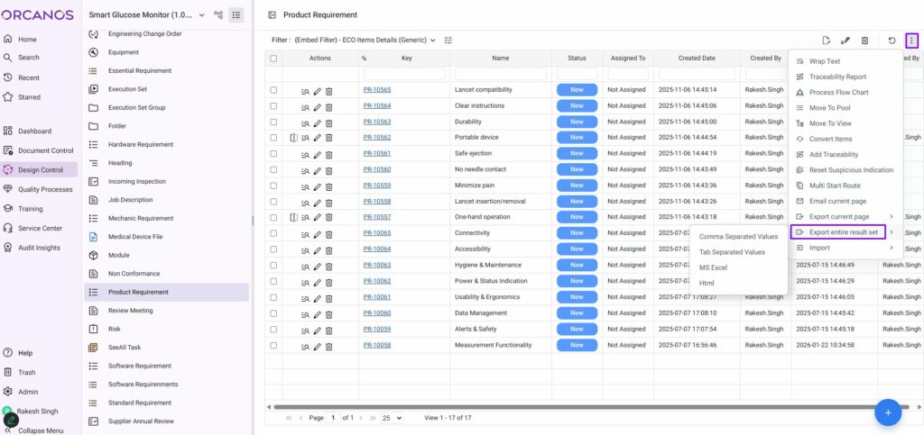 Export entire result set option allows the user to export all records for the selected view in the CSV, TSV, Excel or HTML Format