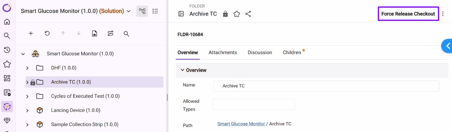 - Click the Force Release Checkout button from the top right corner.