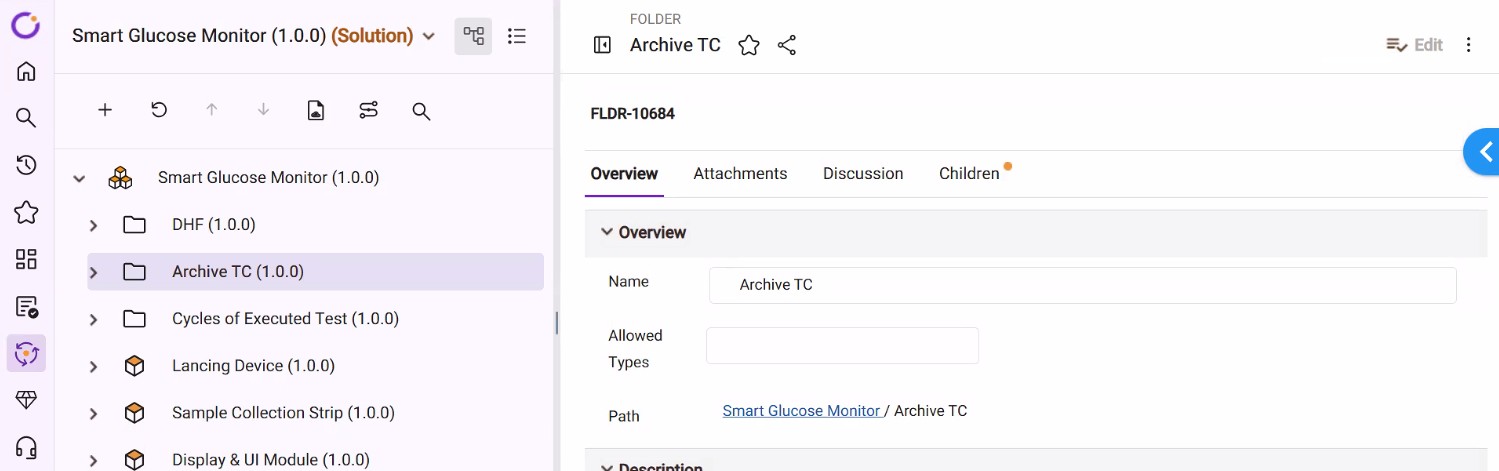 - Choose the module from the sidebar, then select the project from the project selector drop-down list at the top of the left pane (if applicable) and click the Tree View icon.
